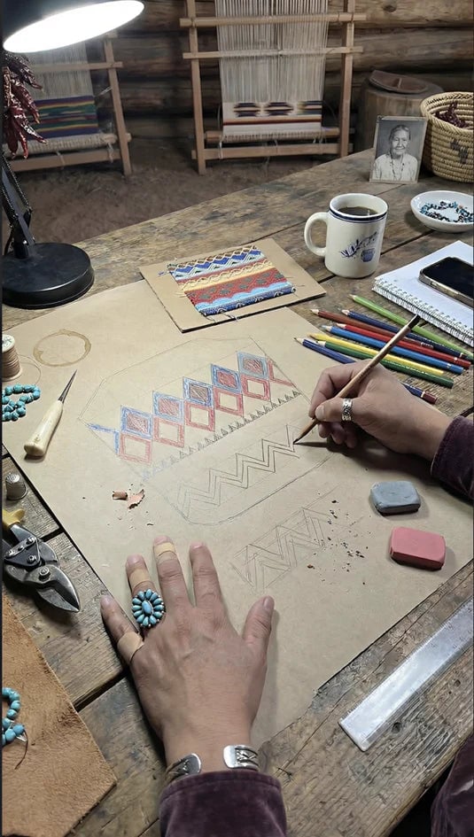 From the first sketch of geometric patterns to the final thread, each piece is created in small batches with a focus on quality and tradition. These bags are more than accessories—they are a continuation of my American heritage, made to be worn and loved for generations.