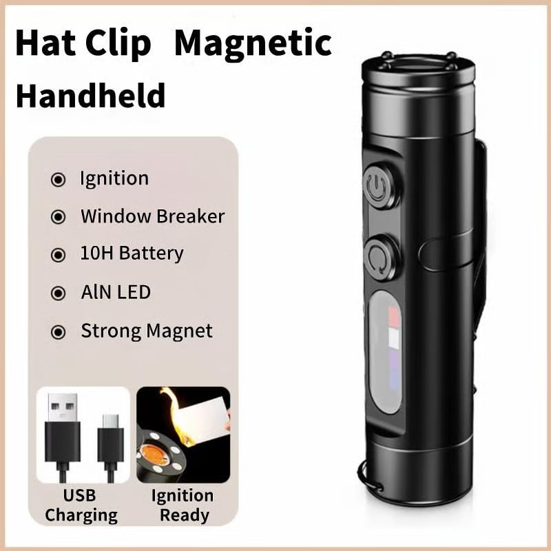 🔦Pocket Rechargeable EDC Flashlight: Mini Keychain Light with Fire Starter & Window Breaker