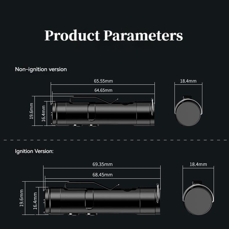 Most pocket flashlights force you to choose between size and functionality – not this one. It offers dual independent switches (no fumbling through modes!) and packs fire-starting, window-breaking, and multi-mode lighting into a tiny frame. At just 18.4mm wide (about a coin’s size) and 69.35mm long (a lighter’s length), it’s truly pocket-sized – no bulky gear weighing you down.