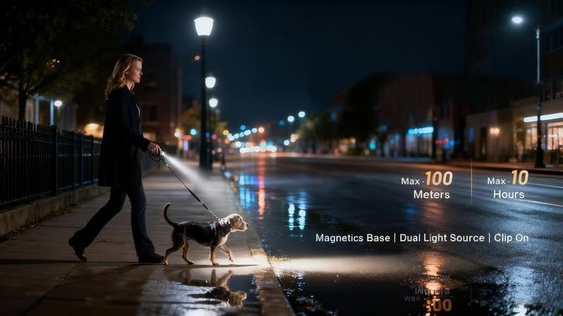 Imagine: Walking your dog at night with a bright beam cutting through darkness 🐶; Fixing your car engine with hands-free magnetic mounting under the hood 🔧; Verifying bills with the UV light while traveling ✈️; Starting a campfire quickly with the built-in fire starter during outdoor trips 🔥; Even chopping veggies in the kitchen with it attached to your cabinet (no more fumbling with handheld lights) 🍳. This flashlight fits every moment.